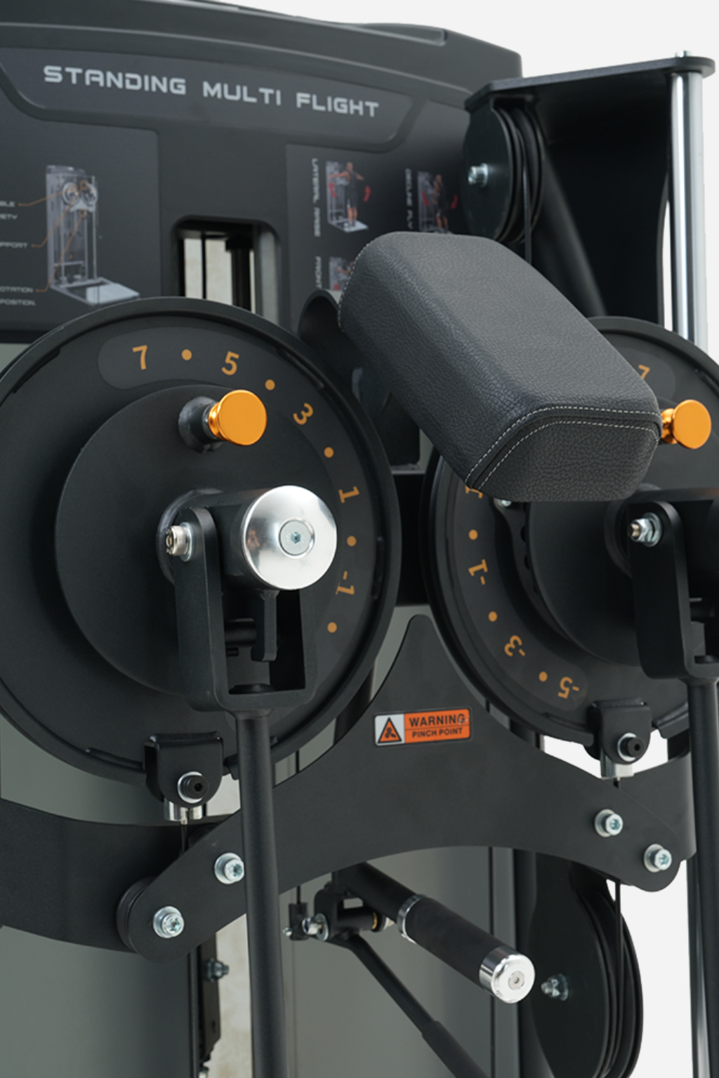 With 14 pivot height positions and a 13-position adjustment disc, users can perform a wide variety of movements, including standing lateral raises, decline flyes, bent-over lateral raises, and traditional flyes. The integrated pivot point head pad ensures comfort and stability during bent-over fly movements, while self-rotating handle covers eliminate friction and improve training comfort.